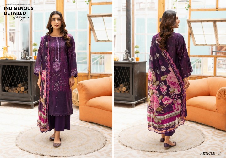 - LUXURY DIGITAL PRINTED LAWN EMBROIDERED NECK FRONT